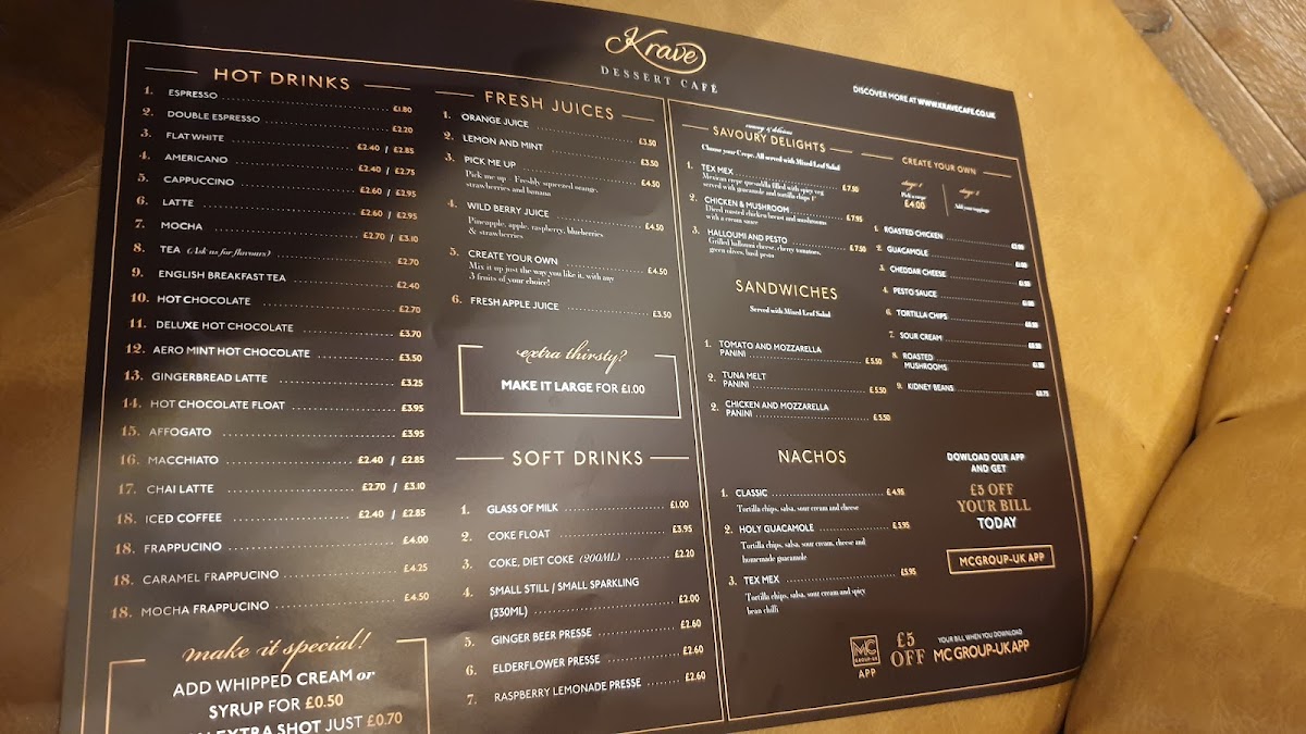 Don't miss out on a chance to explore this delightful dessert oasis; call them at +44 1923 751752 to learn more about their offerings or simply drop by to experience the sweetness that is Krave!